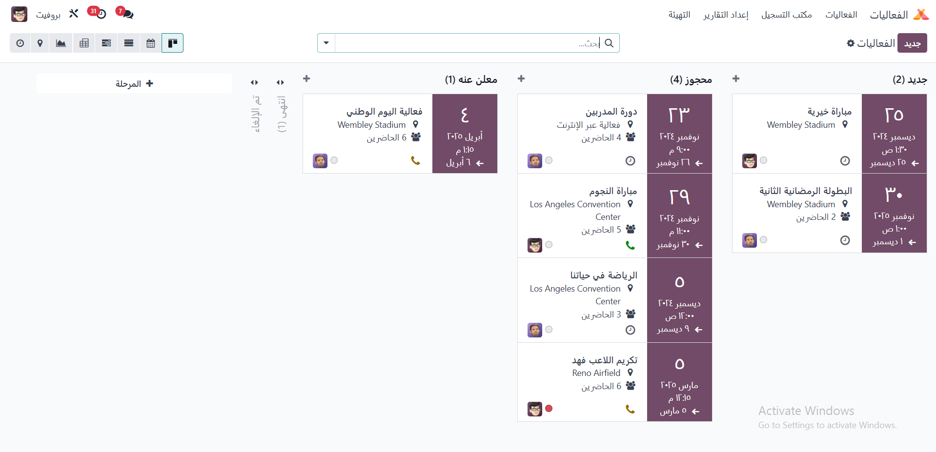 لديك تجارب أداء أو مباريات أو تنظيم دوري كرة قدم ، ببساطة من خلال موقعك الالكتروني جدول فعالياتك واربطها بتذاكر الكترونية للحضور وتابع عملية التسجيل و التحضير من خلال شاشتك